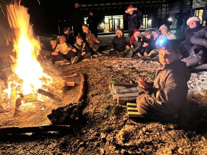 Fredag aften starter vi med fællesspisning af medbragte madpakker, efterfulgt af højtlæsning og hygge omkring brændeovnen, inden vi kryber i soveposerne. Vi overnatter indendørs i hytten.